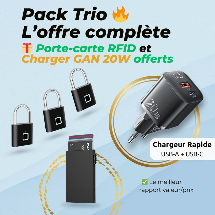 Grâce à SpeedLock™, ton cadenas à empreinte digitale, plus besoin de retenir une combinaison compliquée ou de garder une clé sur soi !